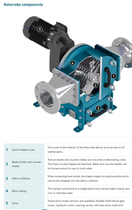 Na voljo v različnih velikostih in pretokih do do 800 m³ / h. Je močan sekalnik in se uporablja tam kje imajodrugi drobilniki težave.